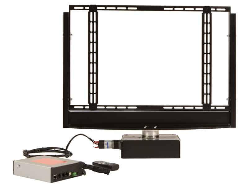 The Table Top TV Rotator is a motorised swivel unit that allows a screen to be electronically rotated either direction on a table or cabinet top. Ideal for when a screen is needed to be viewed in more than one position but is not required to be hidden away when not in use. The Table Top TV Rotator allows great functionality in a compact design.